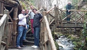 In early May I was happy to welcome a group of four from the hotel Waldhaus am See in St Moritz, Switzerland. This hotel includes one of the world's top whisky bars - The Devil's Place, which has entries in the Guiness Book of Records as having the biggest selection of single malts. The current General Manager and owner, Sandro Bernasconi with his deputy Felix and two key staff wanted an in-depth insight into the Speyside Distilleries which they offer at the hotel. I was pleased to oblige with information and visits to Glenlivet, Glenfiddich, Glenfarclas, Glen Grant, Benromach and the Speyside Cooperage. In between visits they enjoyed lunches and dinners at the Mash Tun, Aberlour , Glenfiddich cafe and The Drouthy Cobbler pub in Elgin.